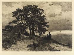 1890-1900. Radierung / Vernis mou, Strichätzung & Kaltnadel, in Schwarzbraun, auf gelbem Kupferdruckkarton. – Von Wilhelm Feldmann. – 43,1 x 61,2 cm (Darstellung / Druckbild), 49,0 x 64,5 cm (Platte), 51,5 x 68,5 cm (Blatt).