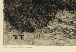 In der Platte links unten gestochene Signatur: "ORIGINAL-RADIERUNG VON WILHELM FELDMANN". Rechts Druckersignatur von Otto Felsing, Berlin. In der Darstellung links unten Monogramm: "W.F." In der Platte rechts unten noch gestochenes Motto: "Wenn trüb das verlöschende letzte Rot / Herschimmert über die Heide ..." – Drei kleinere Randrisse alt hinterlegt. Blattkanten leicht knickspurig und stellenweise bestoßen. Insgesamt mäßig guter Zustand.
