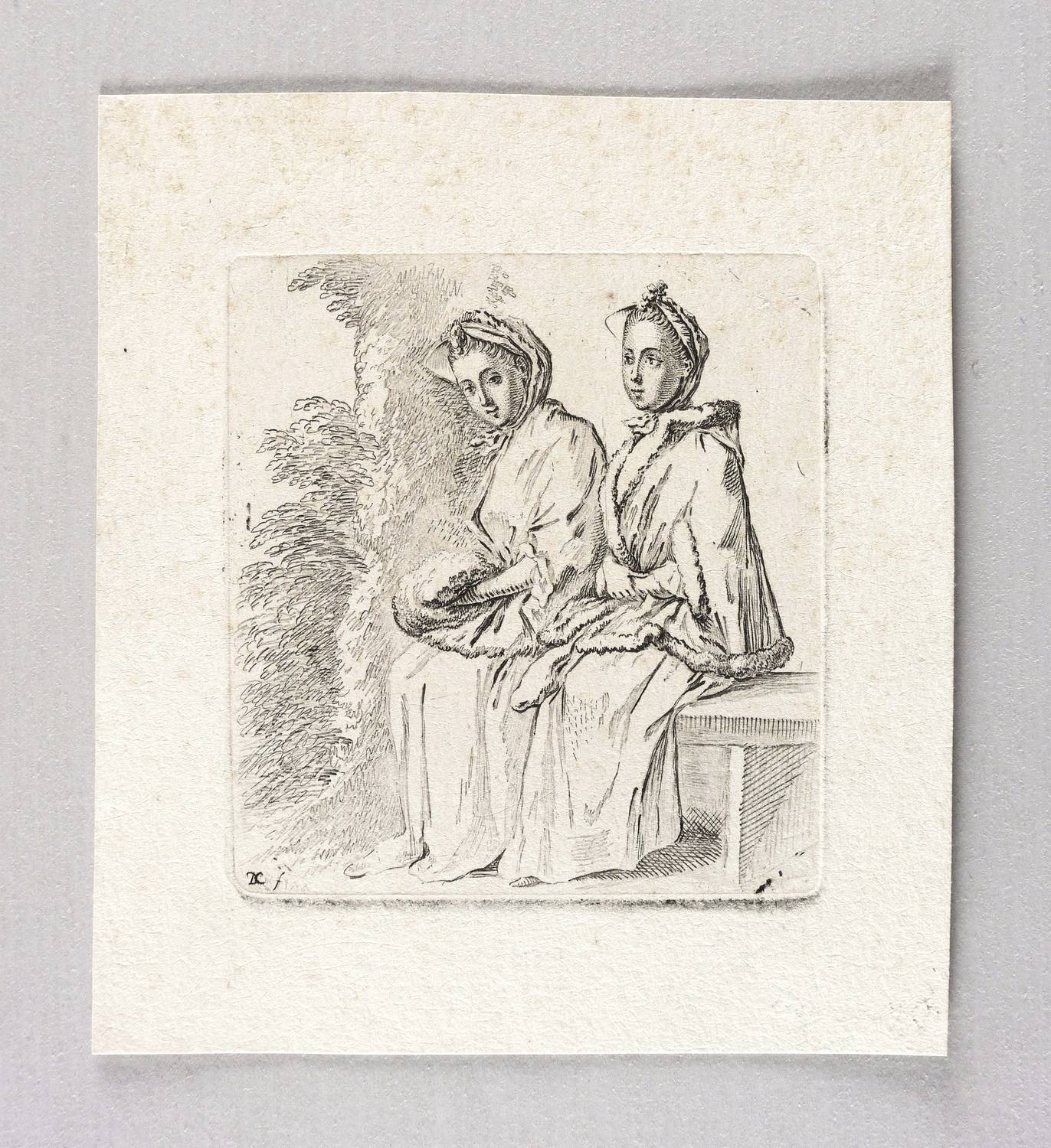 1758. Radierung / Strichätzung & Aquatinta, in Schwarz, auf kräftigem Bütten. – Originale Künstlergrafik, von Daniel Nikolaus Chodowiecki. – 8,6 x 7,9 cm (Darstellung / Platte), 13,0 x 11,5 cm (Blatt).