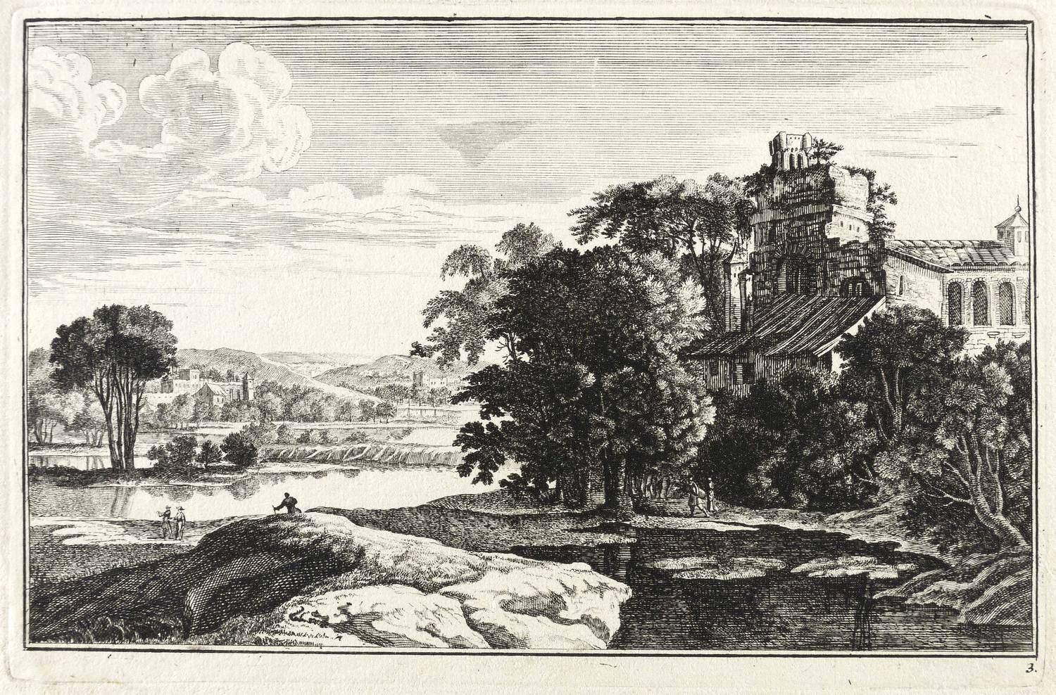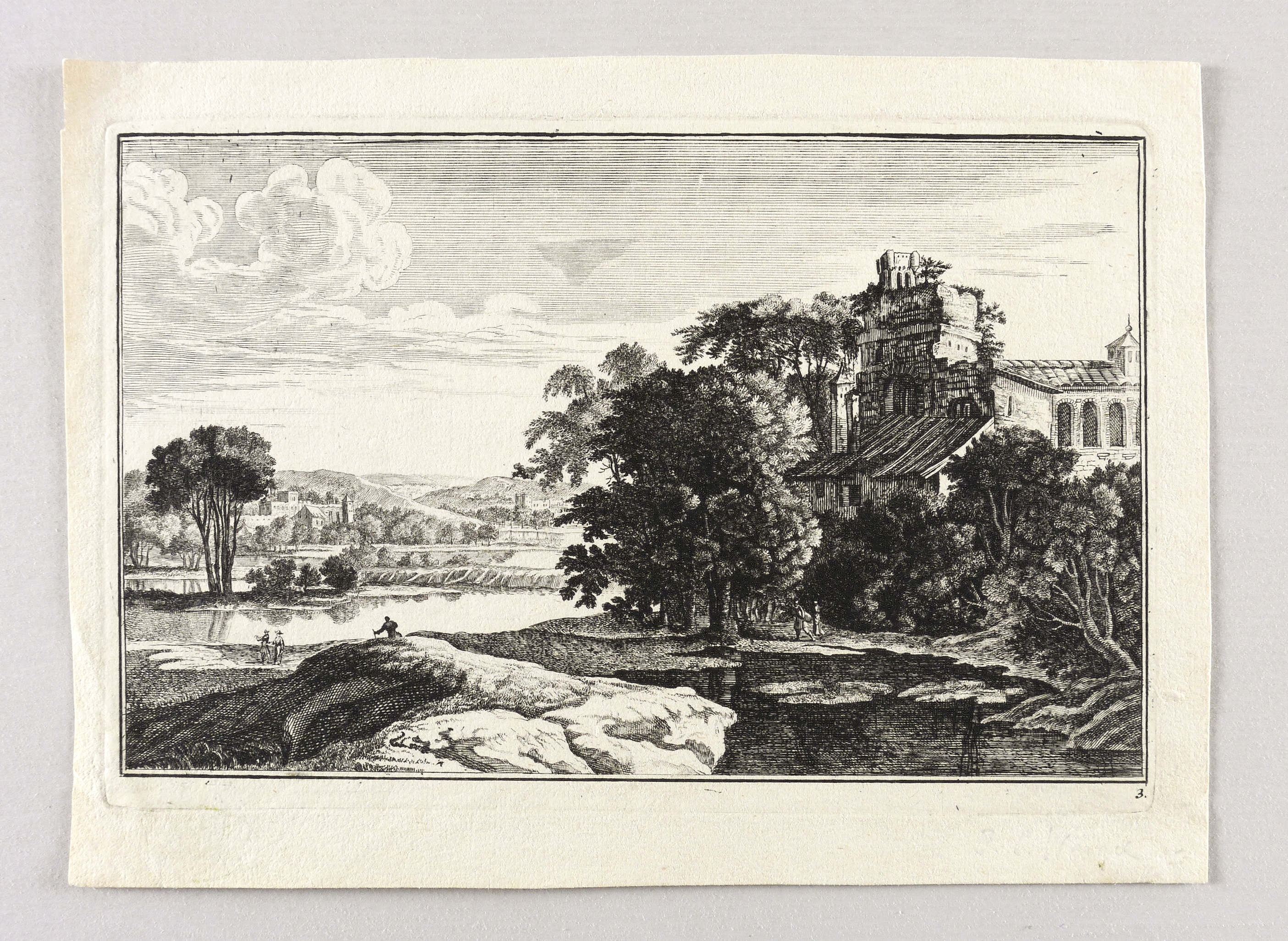 In der Platte rechts unten Tafel-Nr. ″3″. Verso Sammlungsstempel. – Seitlich schmaler Rand um die Platte. Guter Zustand.
