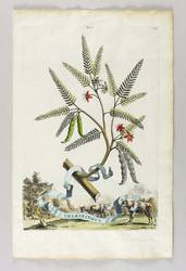 Aus: Abraham Munting, Naauwkeurige Beschryving der Aardgewassen. waar in de veelerley aart en bijzondere eigenschappen der boomen, heesters, kruyden, bloemen met haare vrugten, zaden, wortelen en bollen, neevens derzelver waare voortteeling gelukkige aanwinning, en heylzaame geneeskrachten, na een veel-jarige oeff (Leyden & Utrecht: Pieter van der Aa & Francois Halma 1696). – Unten im Schriftband betitelt: "THAMARINDUS." Oben nummeriert: "Fig. 21. / 113". – Originalrandiges Exemplar. Geringe Altersspuren. Tadellos erhalten. Sehr guter Zustand.