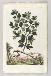 Gehölze. – Sassafrasbaum (Sassafras albidum). – Munting. – „Sassafras Arbor Folio Ficulneo”.