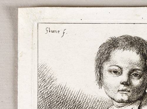 Soldan 18. Andresen 12. – In der Platte links oben Signatur: ″Glume f.″ – Seitenverkehrte Kopie nach dem Blatt aus der Folge von insgesamt acht Kinderbüsten bzw. Kinderproträts von Johann Gottlieb Glume. – Mit schmalem Rand um die Platte. In den oberen Ecken montagebedingt etwas ausgedünnt bzw. fehlende Ecke ausgebessert. Mäßig guter Zustand.