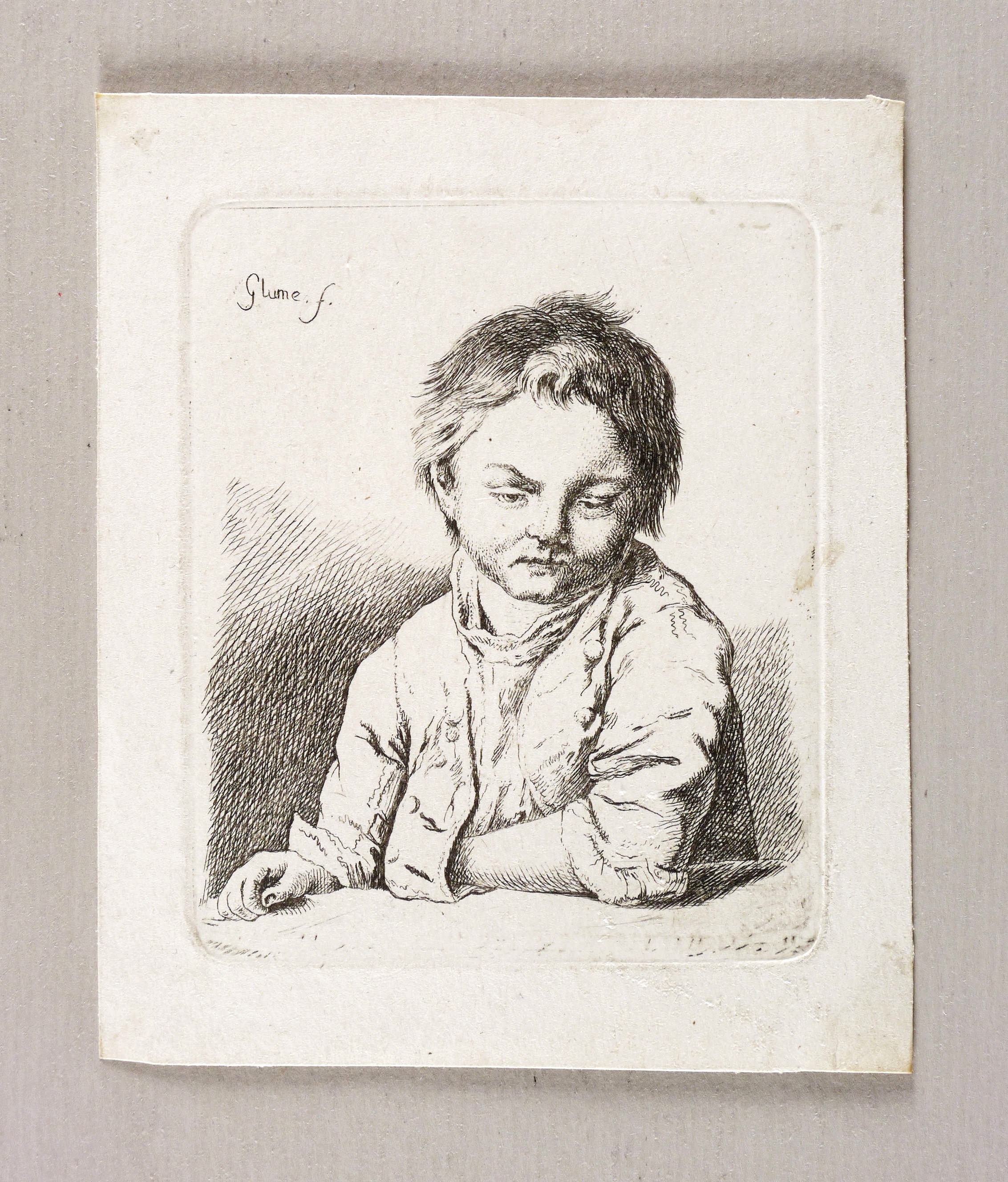 Soldan 23. Andresen 12. – In der Platte links oben signiert: ″Glume f.″ – Blatt aus einer Folge von acht Kinderbüsten bzw. Kinderproträts des Künstlers. – Mit schönem Rand um die Platte. In den Ecken minimal fleckig. Insgesamt ansprechende Erscheingung. Guter Zustand.