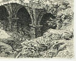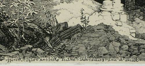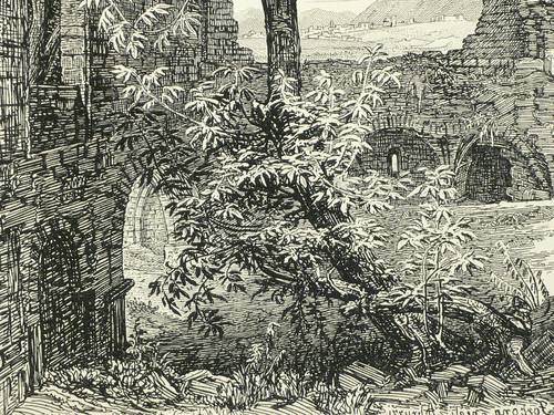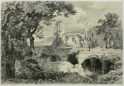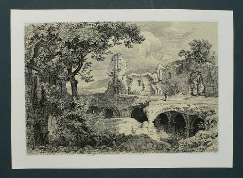 Andresen 29. – In der Platte rechts unten monogrammiert, am unteren Rand mittig und links spiegelschriftlich betitelt sowie signiert und datiert ″nach d. Nat. radirt v. G. Busse 1839″. – Romantisch idealisierende Ansicht der Ruinen von San Massimo, der ehemaligen Kathedrale von Forcona in Civita di Bagno / L’Aquila. – Umlaufend schmaler Rand um Platte und Darstellung, das kräftige Papier von frischer Wirkung. Sehr guter Erhaltungszustand.