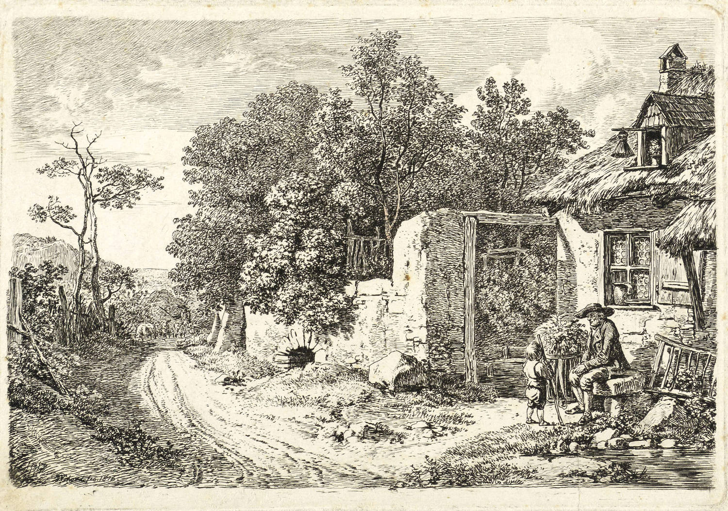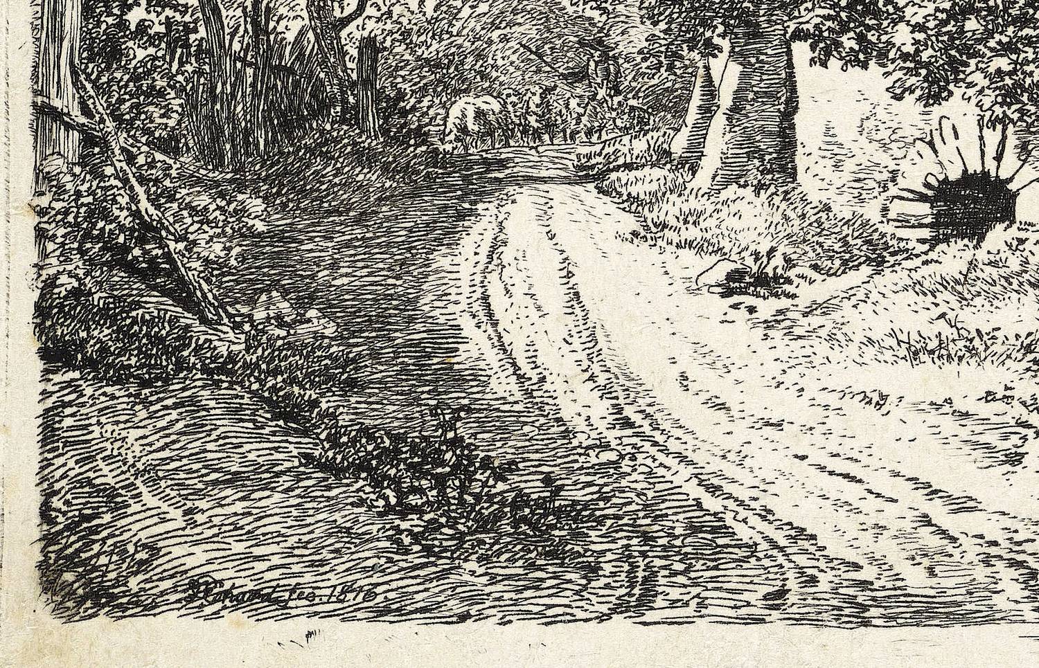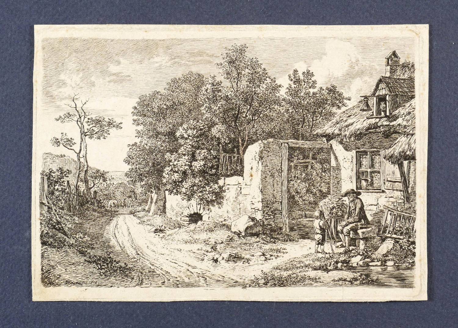 Apell 58 III (von V). – In der Platte links unten im Schatten signiert und datiert: ″JC Erhard fec. 1816.″ Verso Sammlerstempel in Blau mit den Initialen AG im Queroval. – Zustand nach Vollendung der Platte und vor der Adresse von Kettner in Wien. – Knappes Rändchen um die Platte. Verso leichte Montagespuren. Guter Erhaltungszustand.