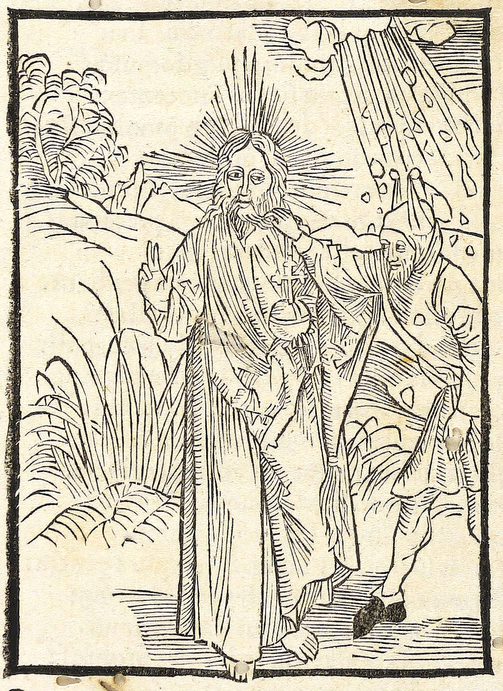 1498. Holzschnitt, in Schwarz, auf Bütten. – Historische Buchillustration, von Meister der Bergmannschen Offizin. – 11,6 x 8,4 cm (Darstellung / Einfassungslinie), 20,5 x 14,5 cm (Blatt).