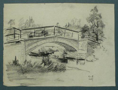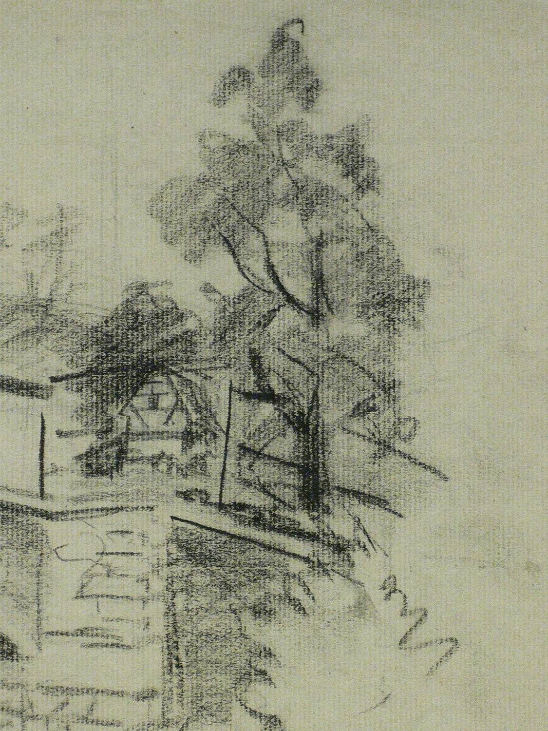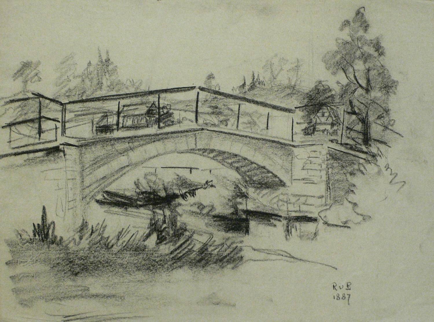 1887. Zeichnung / Kohlezeichnung, auf grünlich-grauem Bütten. – Originale Künstlergrafik, von Monogrammist RvB. – Unikat. – 29 x 39,5 cm (Blatt).