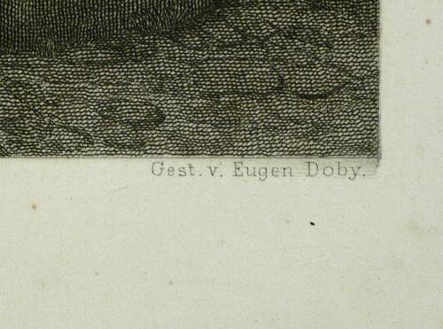 Jenö Doby (1834 Kassa / Kaschau - 1907 Porto-Rè bei Fiume). Auch Eugen Doby. Österreich-ungarischer Kupferstecher und Radierer, auch Porträtmaler. Zeichenunterrcith bei seinem Oheim, dem Kunstschriftsteller Eemerich Henszlmann, und dem Kupferstecher Aloys Fuchsthaler. Ab 1852 Schüler des malers Wolfgang Boehm in Wien. Mit diesem 1854/55 in Florenz und Rom sowie 1855/56 in Paris und London. Ab 1856 als Porträtmaler in Kassa. Studierte dann 1863/64 Kupferstich bei Alexander Soudain in Paris und 1868/69 bei L. Jacoby in Wien. Stach und radierte für die Wiener Gesellschaft für vervielfältigende Kunst. War in Budapest als Stecher für die Archäologische Kommission der ungarischen Akademie und für die ungarische Staatsgalerie beschäftigt. Ab 1884 leitete er die Staatliche Kupferstecherschule in Budapest. Neben zahlreichen Gemälde-Reproduktionen entstanden auch eigene Kompositionen. u.a. das Künstlerheim in Kassa oder verschiedene Porträts. Aufgrund seiner fein nuancierten Wiedergabe von Tonwerten und der malerischen Behandlung der Flächen wurden seine Blätter besonders geschätzt.