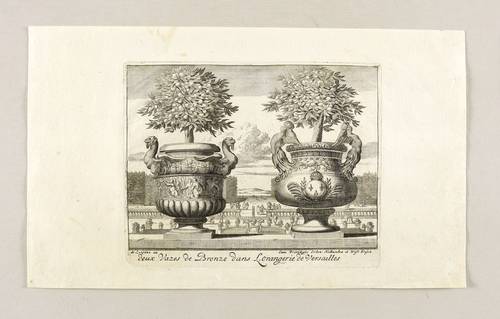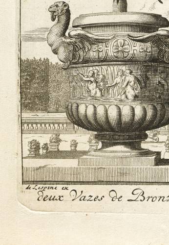 Aus: Veues de Versailles gravées sur les desseins au Naturel. par Guillaume Swidde (Amsterdam: Nie. Visscher 1686). – Links unten signiert. Unterhalb der Darstellung bezeichnet. – Kleiner Einriss im rechten Rand. Sonst aber guter Zustand.