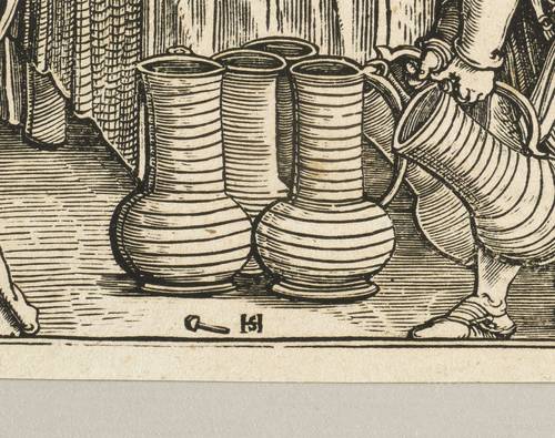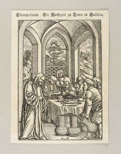 Aus: Hans Sachs, Hans Sachs im Gewande seiner Zeit (Gotha: Rudolf Zacharias Becker 1821). – Unten innerhalb der Darstellung monogrammiert. – Abzug von 1821 vom originalen Druckstock. Urspünglich Einblattdruck mit einem Text von Hans Sachs, hier nur der Holzschnitt. – Guter Zustand.