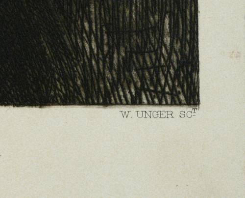 William Unger (1837 Hannover - 1932 Innsbruck). Deutscher Radierer, Kupferstecher und Aquarellmaler. Sohn des Kunsthistorikers Friedrich Wilhelm Unger, Onkel das Malerradierers Otto Ubbelohde. Studierte 1854 an der Düsseldorfer Akademie bei Joseph Keller, ab 1857 an der Münchner Akademie bei Julius Thäter. Ging 1865 nach Leipzig, wo er für die Verleger Brockhaus, Hirzel, Weigel und Wigand arbeitete. Wandte sich 1866 auf Anregung Wilhelm von Bode dem Reproduktionsstich, eigentlich der Reproduktionsradierung zu. In der Wiedergabe der malerischen Tonwerte der Gemälde erzielte er vortreffliche Ergebnisse. 1871 vom Großherzog zu Sachsen-Weimar zum Professor ernannt ging er 1872 nach Wien, später nach Ober-St.-Veit bei Wien und schließlich 1919 nach Innsbruck. Seit 1881 war er Lehrer für Radierkunst an der Kunstgewerbeschule in Innsbruck, 1894-1908 Lehrer an der dortigen Akademie. Neben den zahlenmäßig überwiegenden reproduzierenden Blättern entstanden auch an die 200 Originalradierungen, darunter Motive aus Lovran bei Opatija, aus Amalfi, Messina, Catania, Amsterdam und Ober St. Veit.