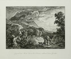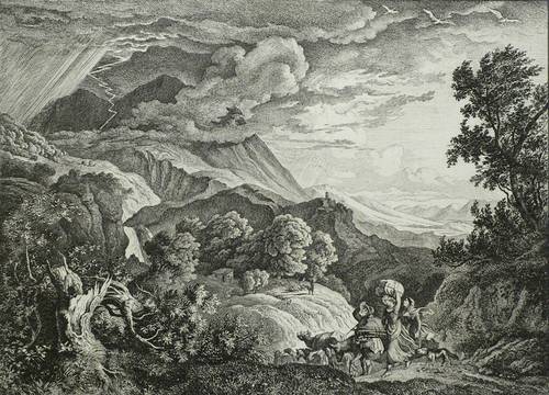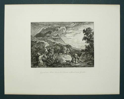 Hoff-Budde 199 [1875, 5]. Hoff 163. – Aus: Adrian Ludwig Richter, Landschaften von Ludwig Richter. Zwölf Original-Radirungen (Leipzig: Alphons Dürr 1875). – In der Platte rechts unten signiert ″Gem. u. gest. v. Richter.″ Mittig Druckeradresse Friedrich Felsing, München. Unterhalb gestochener Titel. – Später originaler Abzug der schon 1830 für die ″Bilderchronik″ des Sächsischen Kunstvereins hergestellten Platte. – Blatt mit reichlichem Rand um die Platte, ohne Lager- und Altersspuren. Hervorragendes Exemplar.