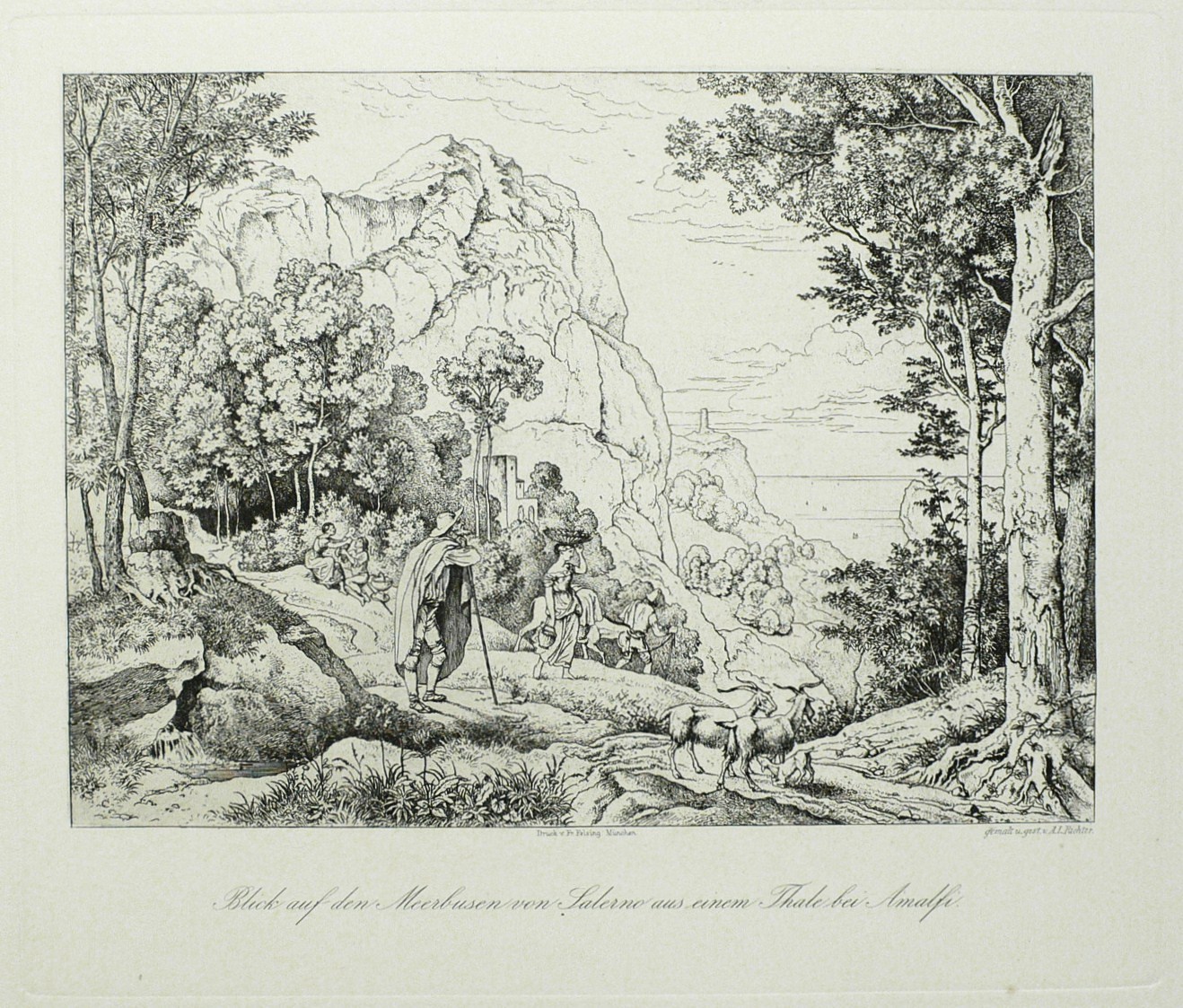 Richter, Adrian Ludwig. – „Blick auf den Meerbusen von Salerno aus einem Thale bei Amalfi”.