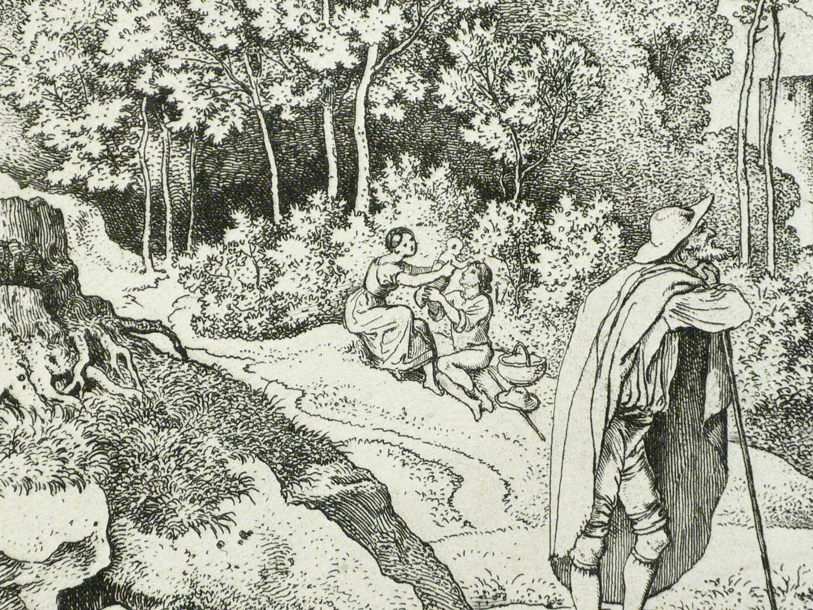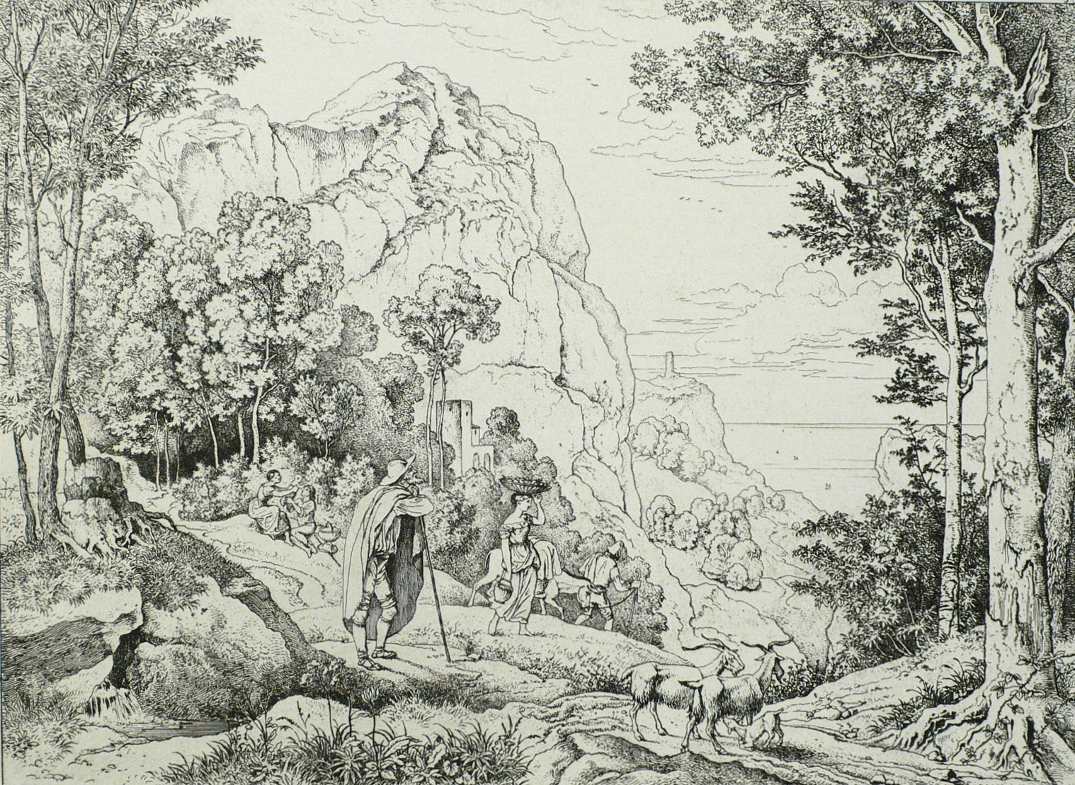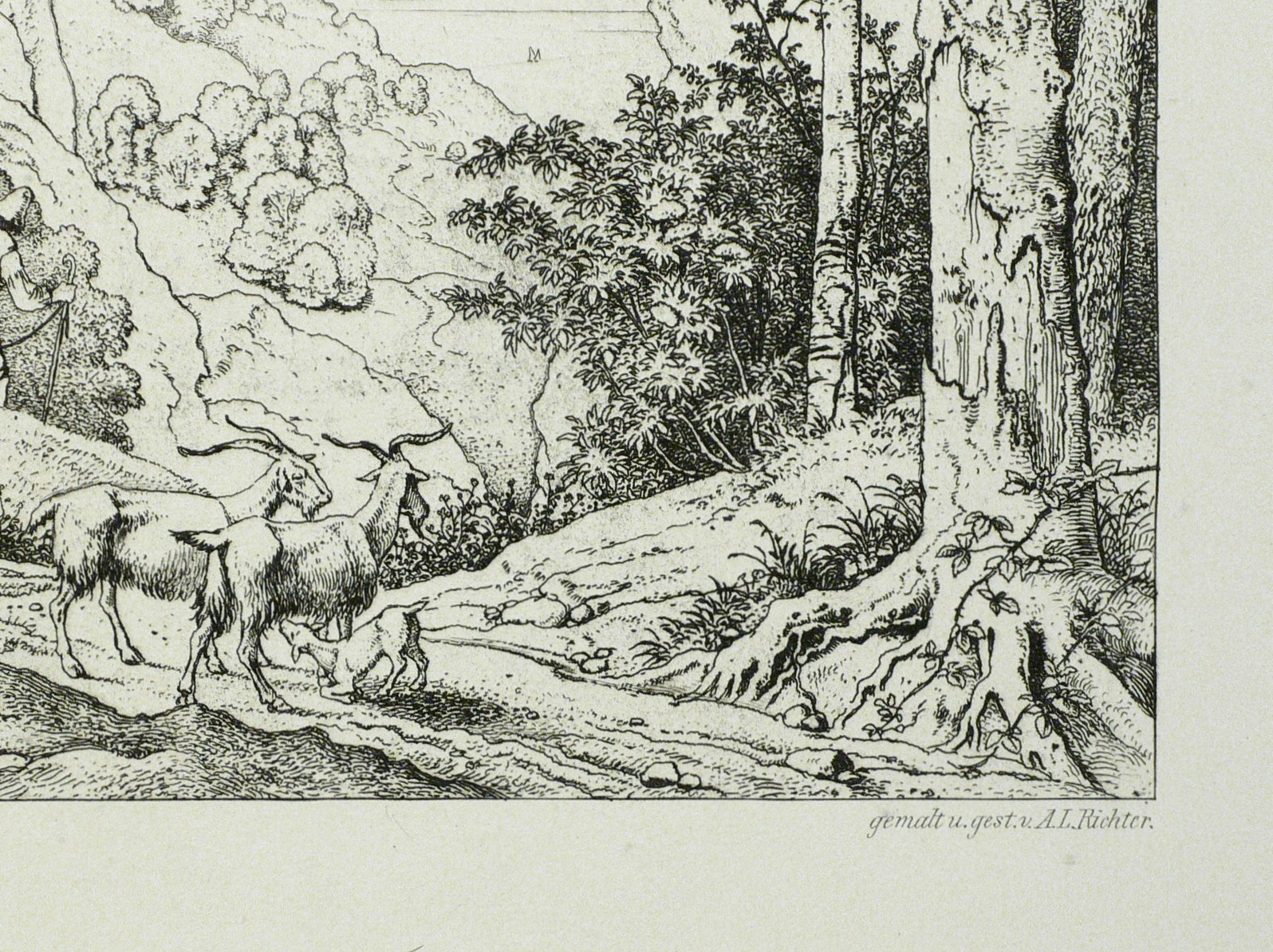 1828/1875. Radierung / Strichätzung, in Schwarz, auf kräftigem Kupferdruckpapier. – Originale Künstlergrafik, von Adrian Ludwig Richter. – 18,2 x 25,1 cm (Darstellung), 24,0 x 28,1 cm (Platte), 34,5 x 46 cm (Blatt).