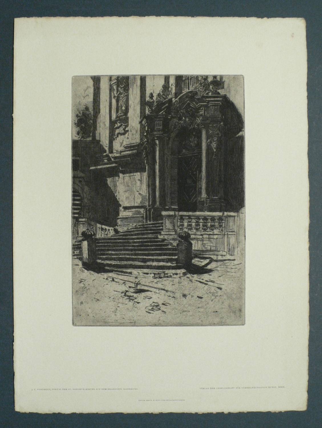 In der Platte datiert und signiert: ″Vondrous / Prague 1911″. Weit unterhalb der Darstellung typografisch bezeichnet, mit Drucker- und Verlagsadresse. – Papier altersbedingt leicht gebräunt. Im breiten originalen Rand diverse Knickspuren und geringfügige Flecken. Insgesamt von guter Erhaltung.
