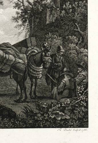 1786. Radierung / Strichätzung. – Originale Künstlergrafik, von Robert Daudet. – 15,7 x 20,7 cm (Darstellung), 19,2 x 23,5 cm (Platte), 28 x 44 cm (Blatt).