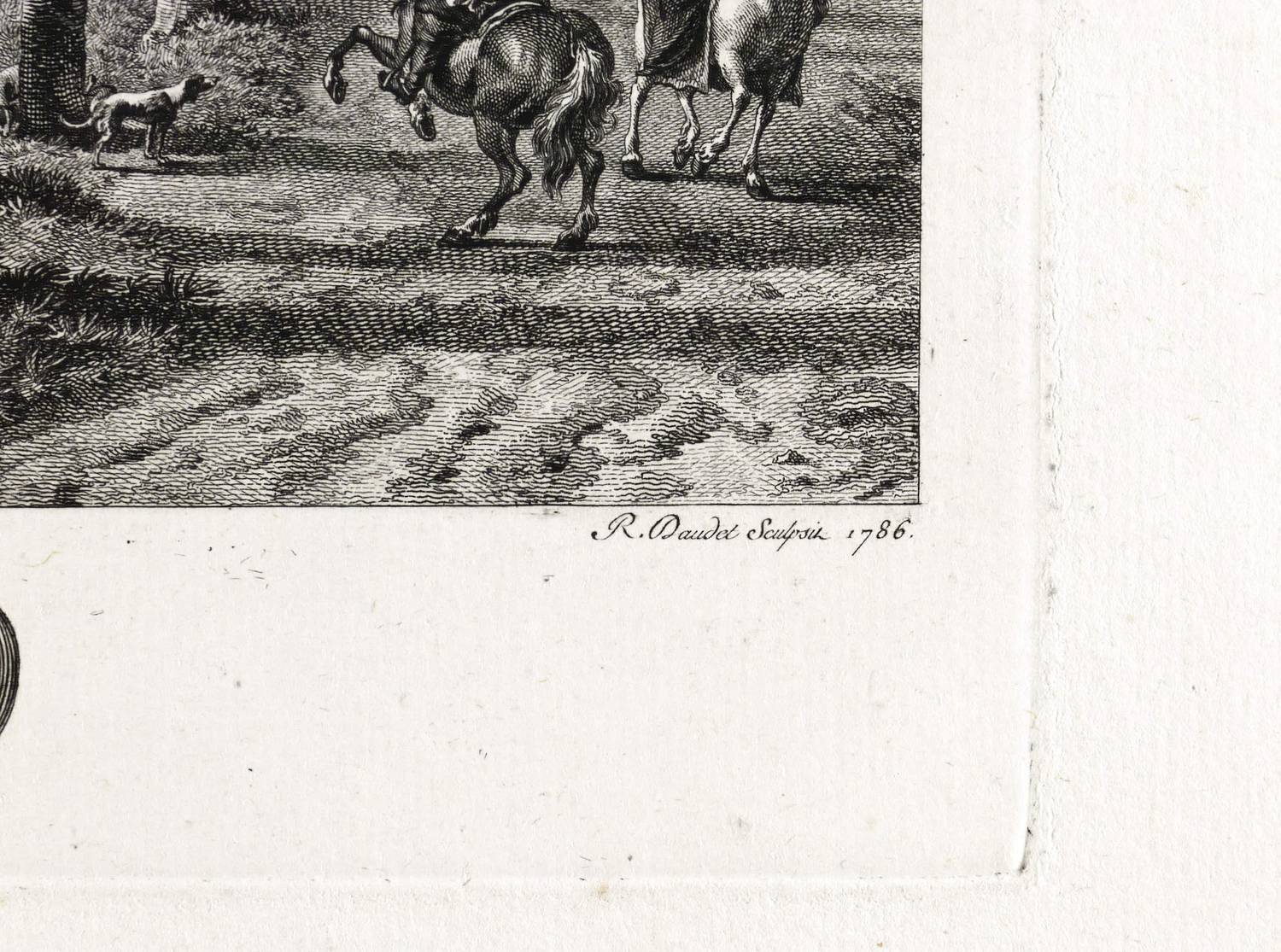 1786. Radierung / Strichätzung. – Originale Künstlergrafik, von Robert Daudet. – 20,6 x 15,6 cm (Darstellung), 24,5 x 17,6 cm (Platte), 44 x 28 cm (Blatt).