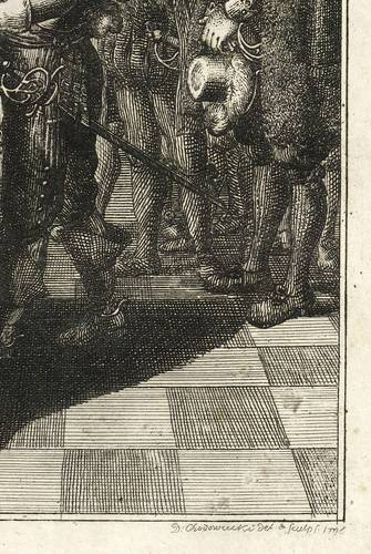 Daniel Nikolaus Chodowiecki (1726 Danzig - 1801 Berlin). Deutscher Kupferstecher, Grafiker und Illustrator. Bedeutender Vertreter der Kunst des Deutschen Klassizismus. Begann 1740 zunächst eine kaufmännische Lehre. Ab 1743 in der Haushaltswarenhandlung seines Onkels Antoine Ayrer in Berlin tätig. Letzterer unterstützte seine und seines Bruders Gottfried künstlerische Ausbildung und ließ beide von Johann Jakob Haid, Bernhard Rode und Johann Heinrich Meil unterrichten. Von den Ladengeschäften befreit, konnten sie sich 1754 mit Miniaturen und Emailmalereien selbstständig machen. Seit 1758 erste Radierversuche in allerlei Techniken wie Strichätzung, Aquatinta und Crayon-Manier. Frühe Verbindungen zu Verlegern von Almanachen und Kalendern beförderten diese Entwicklung. Vielbeschäftigt hat er Berlin nur selten verlassen. Eine längere Reise zu seiner Mutter nach Danzig im Jahre 1773 schlug sich dann entsprechend intensiv in seiner Arbeit nieder. Seit 1764 Mitglied der Königlich-Preußischen Akademie der Künste, ab 1797 deren Direktor.