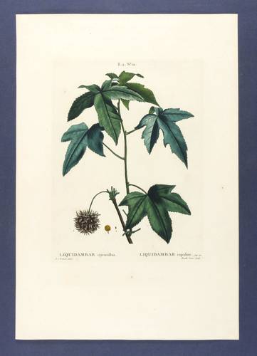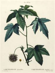 Gehölze. – Amerikanischer Amberbaum. – Redouté. – „Liquidambar styraciflua. Liquidambar copalme”.