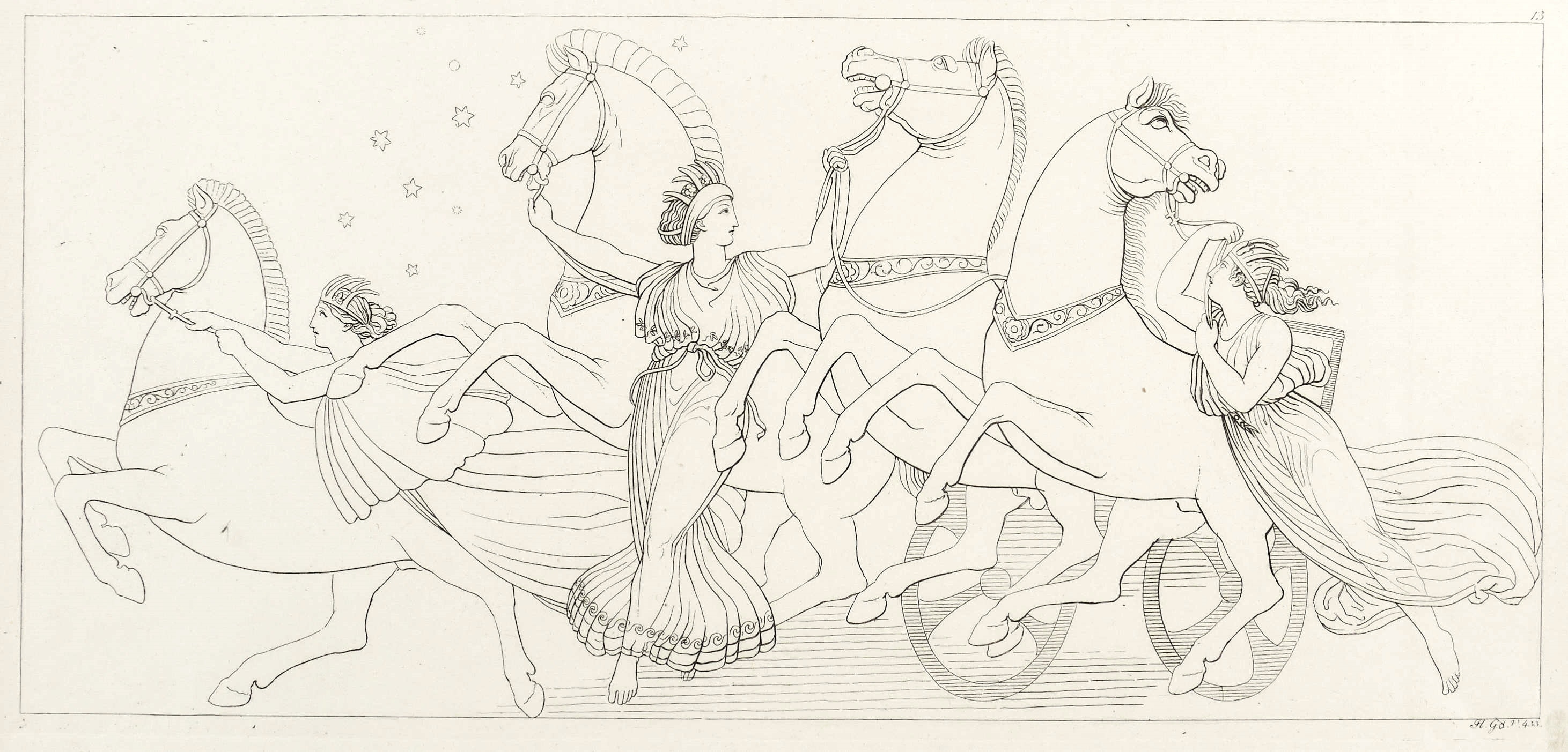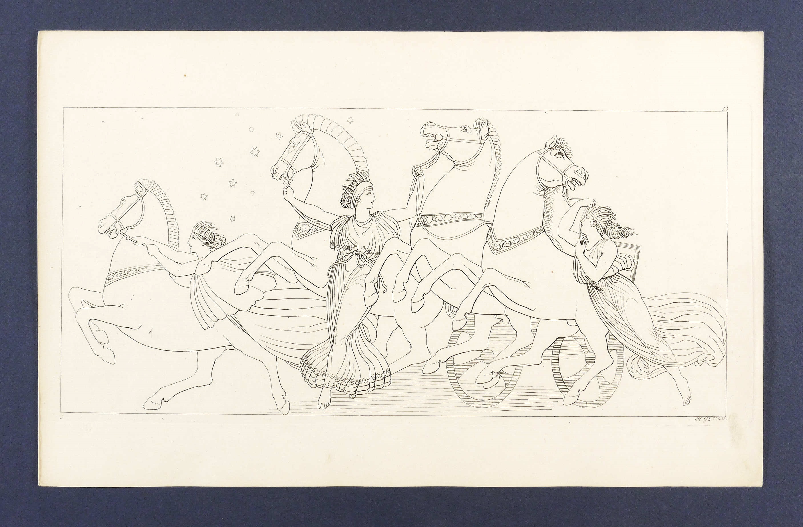 Aus: Johan Flaxman, Umrisse zu Homer's Ilias und Odyssee. Gestochen von E. Riepenhausen (Berlin: Theodor Christian Friedrich Enslin 1851). – In der Platte Tafel-Nr. – Sehr guter Zustand.