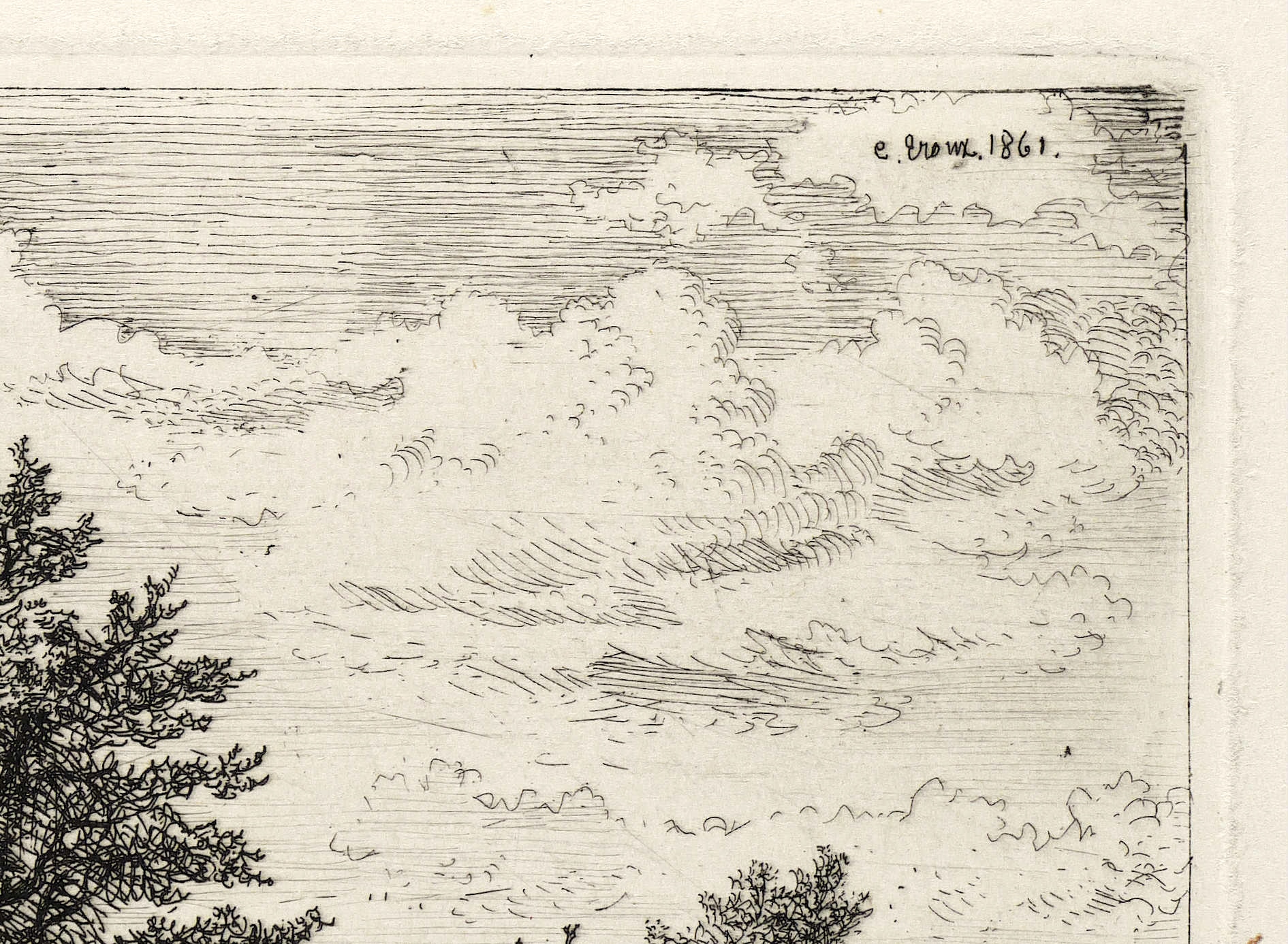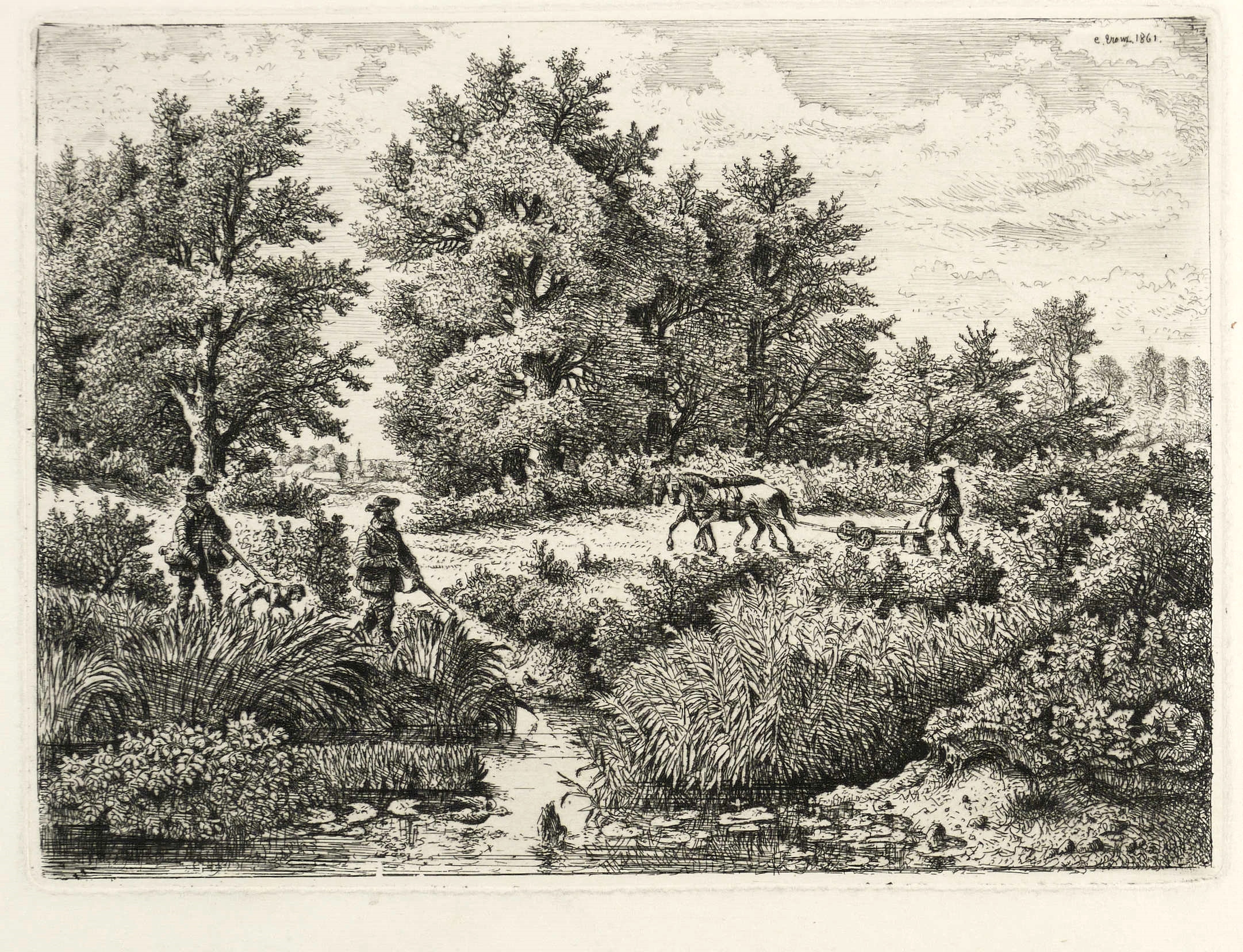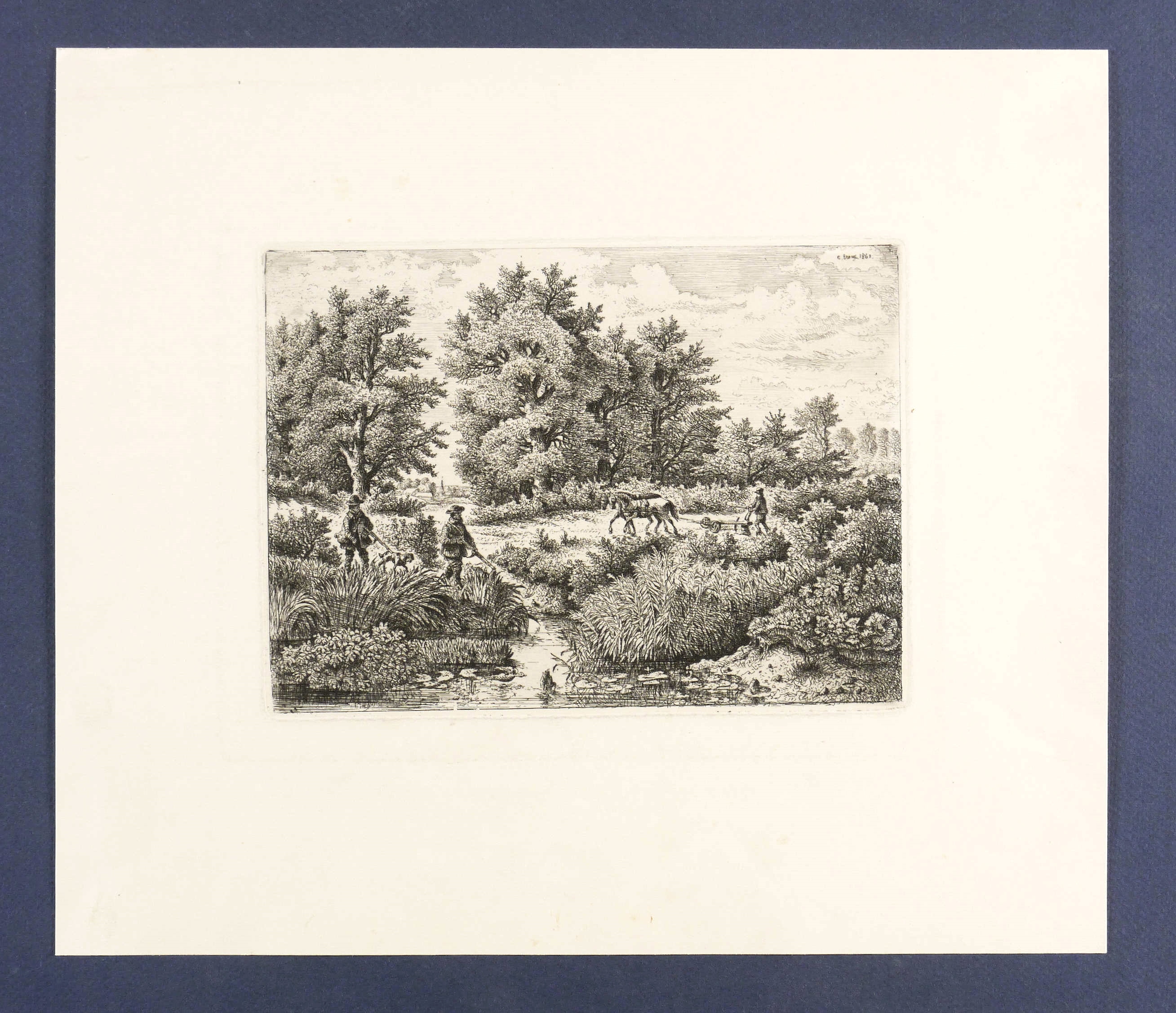 1861. Radierung / Strichätzung, auf Kupferdruckpapier. – Von Charles Jean Groux. – 14,6 x 20,0 cm (Darstellung / Einfassungslinie), 15,1 x 20,7 cm (Platte), 29 x 33,5 cm (Blatt).