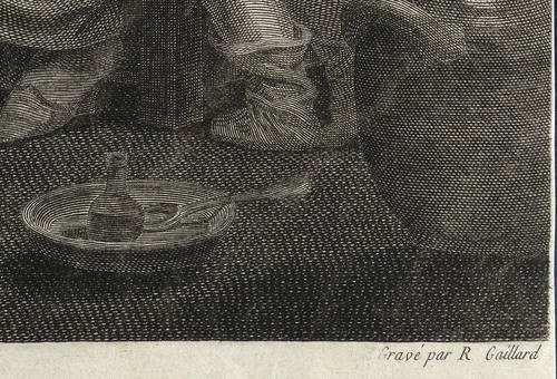 Rene Gaillard (1718/1719 Paris - 1790 Paris). Französischer Kupferstecher. Stach vorrangig nach fremden Vorlagen, so v.a. nach Boucher, dessen weiche Fleischbehandlung er nachzuahmen suchte.
