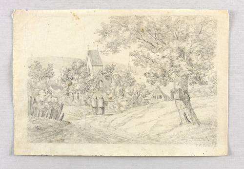 Erhard, Johann Christoph. – „Landschaft mit einer Kapelle und zwei Mönchen”.