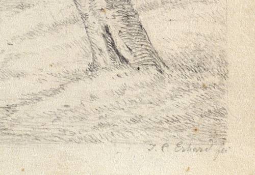 Rechts unten in Bleistift signiert: ″J. C. Erhard fec″. – Provenienz: Sammlung Friedrich Julius Arndt (genannt Fritz Arndt, 1856-1919, Besitzer des Klosterguts Oberwartha bei Dresden), danach Sammlung Dr. Theodor Arndt, Dresden- Blasewitz. – Blatt verso mit Montagespuren. Insgesamt aber guter Zustand.