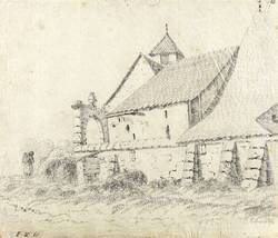 Erhard, Johann Christoph -  -  - Bäuerin vor einem Gehöft
