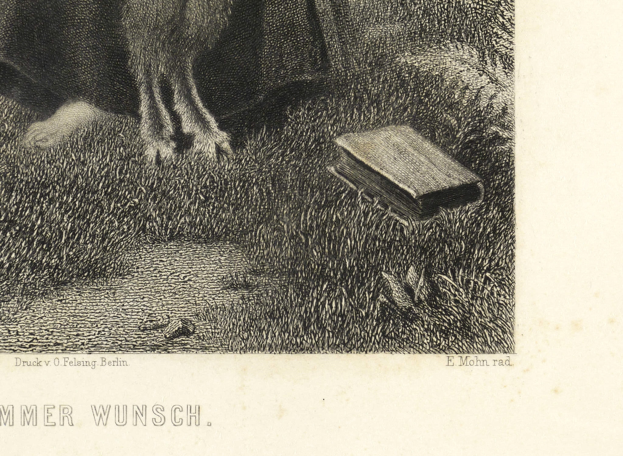 Aus: Vereinsgeschenk des Sächsischen Kunstvereins auf das Jahr ... (Dresden: Sächsischer Kunstverein 1893), Bd. 11. – In der Platte rechts unten signiert: ″E. Mohn rad.″ Außerdem Titel und Druckeradresse von Otto Felsing, Berlin. – Originalrandiges Exemplar. Papier im Rand etwas stockfleckig. Mäßig guter Zustand.