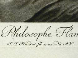 Johann Jakob Haid (1704 Süßen oder Klein-Eislingen bei Göppingen - 1767 Augsburg). Auch Johann Jacob Hayd. Deutscher Kupferstecher, Schabkünstler, Bildnismaler und Verleger. Vater des Johann Elias Haid (1739-1809). Lernte ab 1726 in Augsburg bei Georg Philipp Rugendas und Johann Elias Ridinger; Schlachten- und Tiermalerei sowie Bildnisse. Später Hinwendung zum Kupferstich und speziell zur Mezzotinto-Technik, der Schabkunst. Gründete in Augsburg ein eigenes Verlagshaus, in dem er erfolgreiche Porträtstichserien in Schabkunst herausgab. Anton Graff und Johann Friedrich Bause zählten zu seinen Schülern.