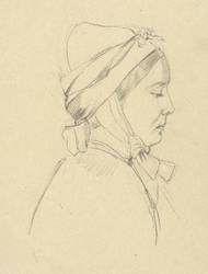 1859. Zeichnung / Bleistiftzeichnung, auf gelbem Zeichenkarton. – Originale Künstlergrafik, von Sophie von Roth. – Unikat. – 14,0 x 9,5 cm (Darstellung), 26,5 x 17,5 cm (Blatt).