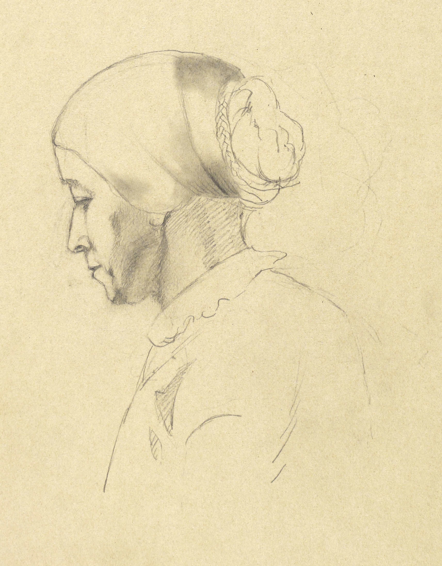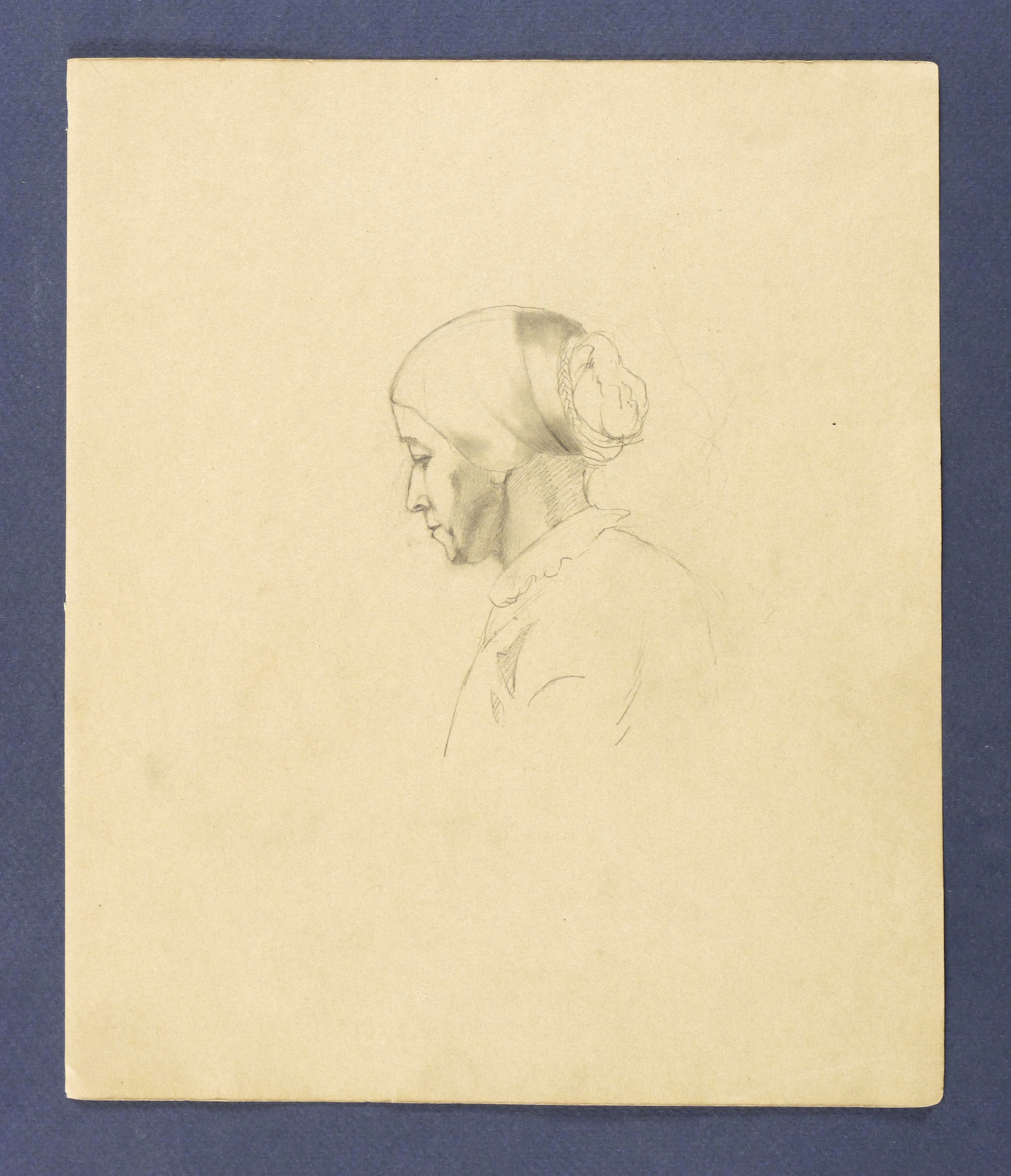 1859. Zeichnung / Bleistiftzeichnung, auf gelbem Zeichenkarton. – Originale Künstlergrafik, von Sophie von Roth. – Unikat. – 11,5 x 8,5 cm (Darstellung), 26,5 x 22 cm (Blatt).