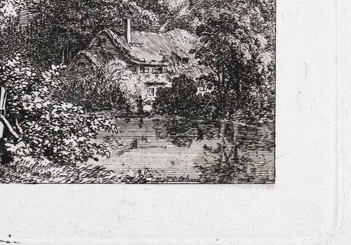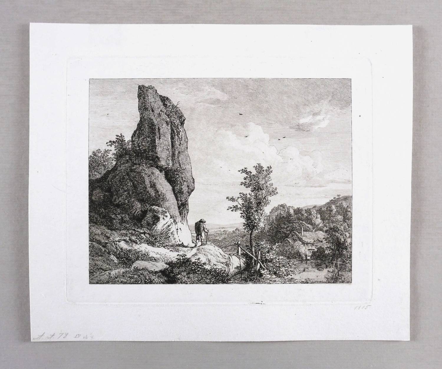 Apell 78 IV (von V). – In der Platte rechts unten signiert und datiert: ″J.C. Erhard inv. et fec. 1815″. In der unteren linken Blattecke von Sammlerhand in Bleistift bezeichnet: ″A[pell]. 78 IV od. V″. Rechts Jahreszahl: ″1815″. – Schöner Abzug vom vierten Zustand der Platte mit allen Vollendungen, den ausgeschliffenen Nadelproben und vor der Reduzierung des Plattenrandes. – Provenienz: Sammlung Friedrich Julius Arndt (genannt Fritz Arndt, 1856-1919, Besitzer des Klosterguts Oberwartha bei Dresden), danach Sammlung Dr. Theodor Arndt, Dresden- Blasewitz. – Sehr guter Zustand.