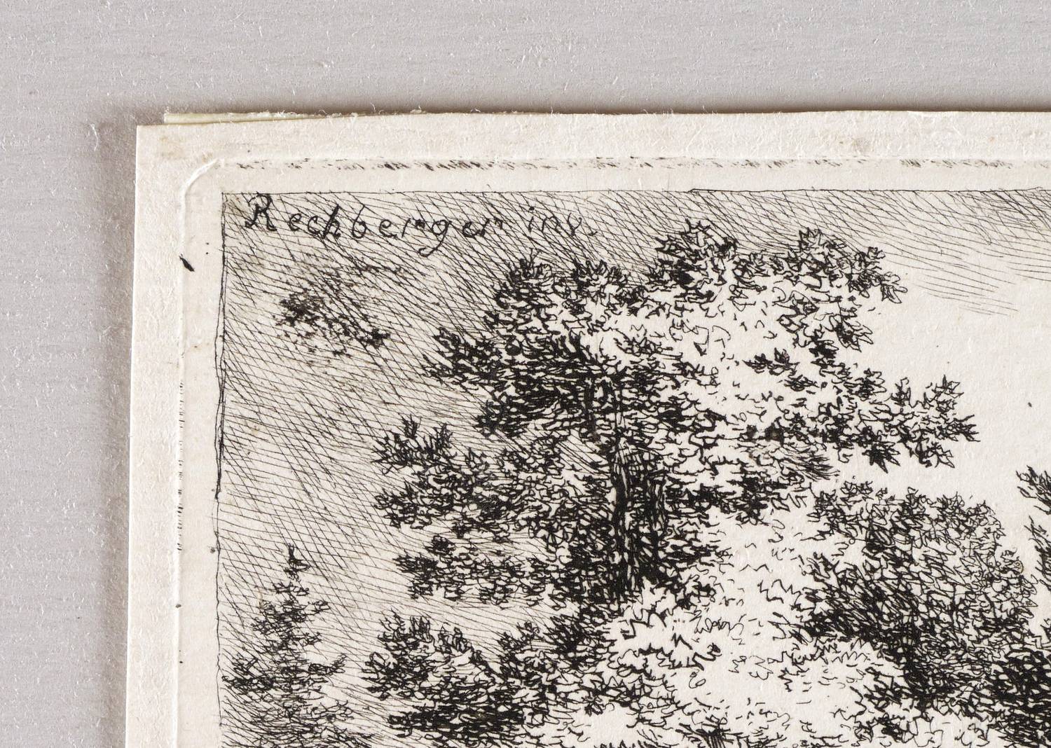 Links oben bezeichnet: ″Rechberger inv.″ – Schmalrandiges Blatt veros mit Montageresten und zwei Sammlungsstempeln. Sonst aber guter Zustand.