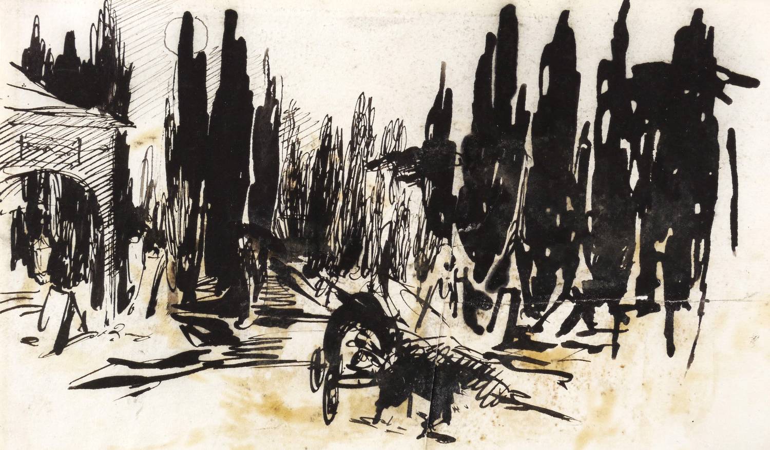 Um 1890. Zeichnung / Federzeichnung, in schwarzer Tusche, auf leichtem Velin. – Originale Künstlergrafik, von Hermann Prell. – 10,5 x 18 cm (Darstellung / Blatt).
