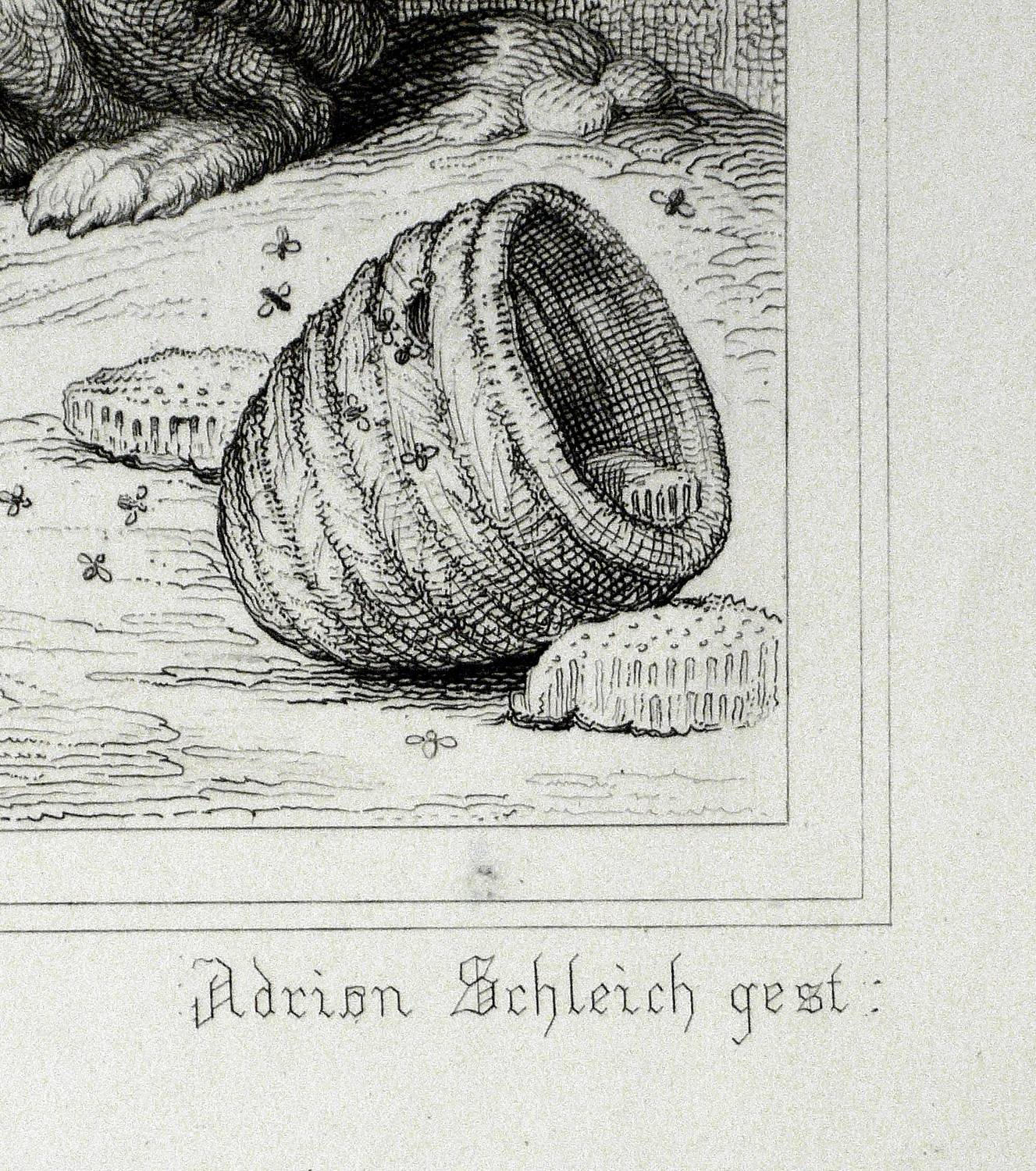 Adrian Schleich (1812 München - 1894 München). Deutscher Kupfer- und Stahlstecher. Sohne des Johann Karl Schleich und Vater des Robert Schleich. Seit 1824 Studium an der Münchner Akademie bei Samuel Amsler. Er stach nach Vorlagen von Wilhelm von Kaulbach, Engelbert Seibertz und anderen. Zudem war Schleich für das Bibliographischen Institut in Hildburghausen tätig.