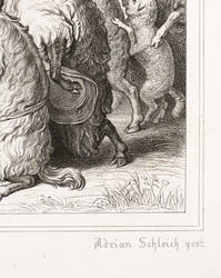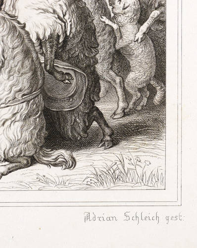 Adrian Schleich (1812 München - 1894 München). Deutscher Kupfer- und Stahlstecher. Sohne des Johann Karl Schleich und Vater des Robert Schleich. Seit 1824 Studium an der Münchner Akademie bei Samuel Amsler. Er stach nach Vorlagen von Wilhelm von Kaulbach, Engelbert Seibertz und anderen. Zudem war Schleich für das Bibliographischen Institut in Hildburghausen tätig.