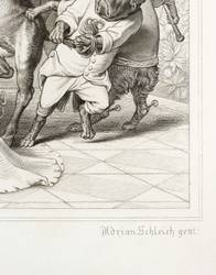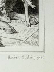 Adrian Schleich (1812 München - 1894 München). Deutscher Kupfer- und Stahlstecher. Sohne des Johann Karl Schleich und Vater des Robert Schleich. Seit 1824 Studium an der Münchner Akademie bei Samuel Amsler. Er stach nach Vorlagen von Wilhelm von Kaulbach, Engelbert Seibertz und anderen. Zudem war Schleich für das Bibliographischen Institut in Hildburghausen tätig.