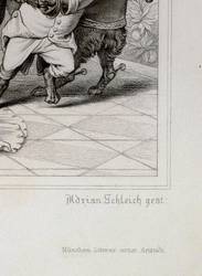 Adrian Schleich (1812 München - 1894 München). Deutscher Kupfer- und Stahlstecher. Sohne des Johann Karl Schleich und Vater des Robert Schleich. Seit 1824 Studium an der Münchner Akademie bei Samuel Amsler. Er stach nach Vorlagen von Wilhelm von Kaulbach, Engelbert Seibertz und anderen. Zudem war Schleich für das Bibliographischen Institut in Hildburghausen tätig.