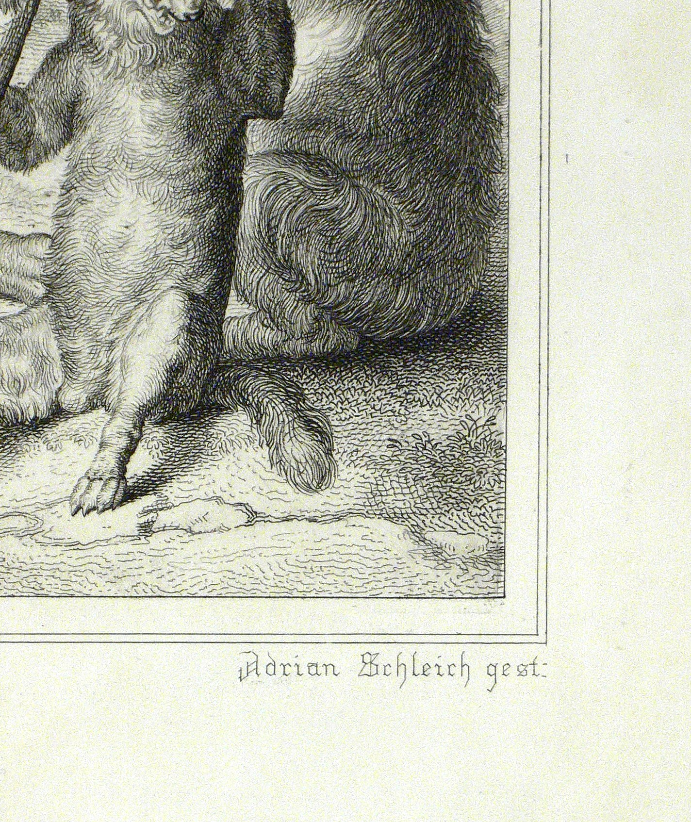 Andresen 78 II (von II). – Links unten signiert und datiert: ″J. C. Reinhart inv fec.t Romae 1799.″ Unterhalb der Darstellung bezeichnet: ″Luca C. IIII. v. 3″ und oben rechts nummeriert: ″3.″ Im unteren Rand mit dem Sammlungsstempel der Universität Würzburg der Sammlung Martin von Wagners. Verso Doublettenstempel des Wagner-Museums u.a. Sammlungsstempel. – Blatt 3 (von 6) der Folge ″Die Landschaften im heroischen Stil.″ von 1792-99. – Blatt bis auf den Plattenrand beschnitten. Papier in den Ecken wegen vormaliger Montierung teils ausgedünnt. Rechte ober Ecke leicht angeknickt und mit kleinerem Einriss. Insgesamt guter bis mäßig guter Zustand.