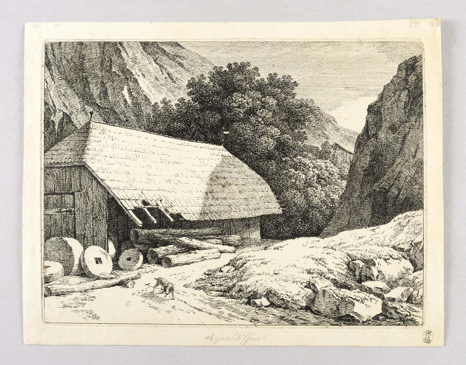 Um 1830. Kupferstich / Radierung. – Von Franz Xaver Rektorzik. – 16,5 x 21,9 cm (Darstellung / Platte), 18,5 x 24 cm (Blatt).