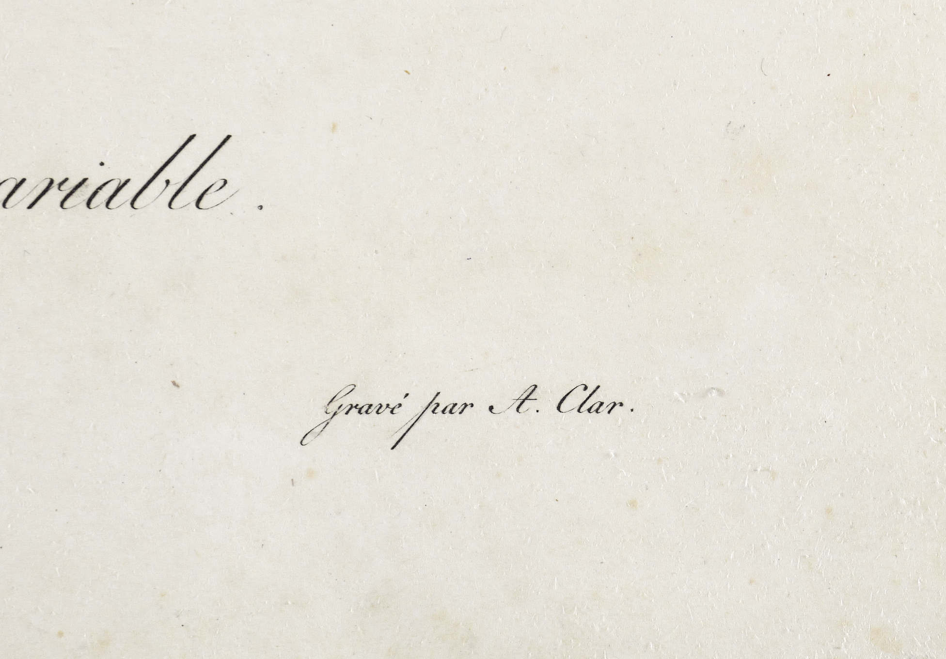 Aus: Johann Centurius von Hoffmannsegg, Flore Portugaise. Ou Description De Toutes Les Plantes Qui Croissent Naturellement En Portugal (Berlin: Carl Friedrich Amelang 1809-20). – Rechts unten signiert: ″Gravé par A. Clar.″ Unterhalb der Darstellung zweisprachig bezeichnet. Oben rechts nummeriert: ″Pl. 17.″ – Blatt mit leichten Lagerspuren und vereinzelt leicht fleckig. Sonst aber guter Zustand.