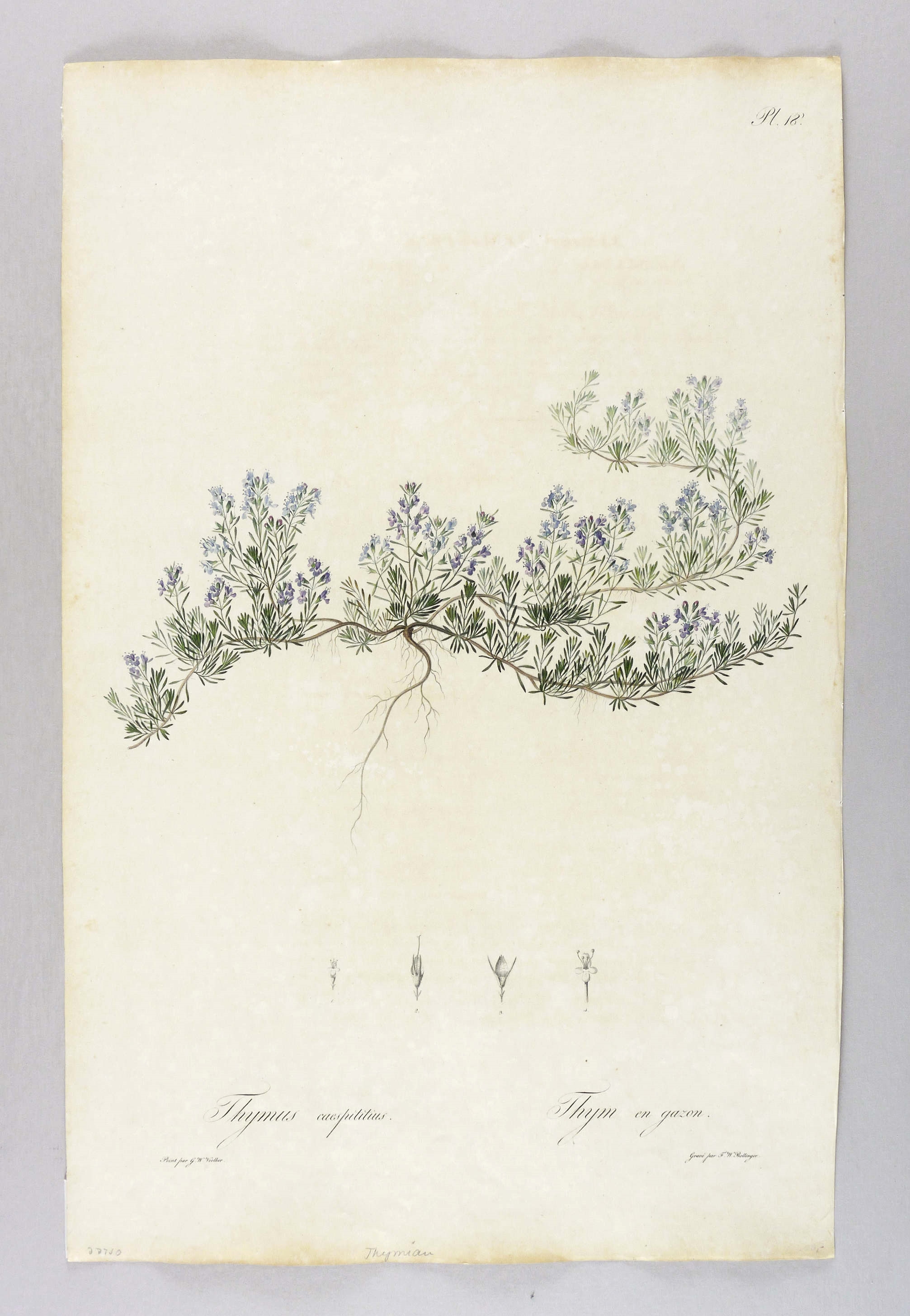 Lippenblütler. – Schillernder Thymian. – Hoffmannsegg. – „Thymus caespititius. Thym en gazon ”.