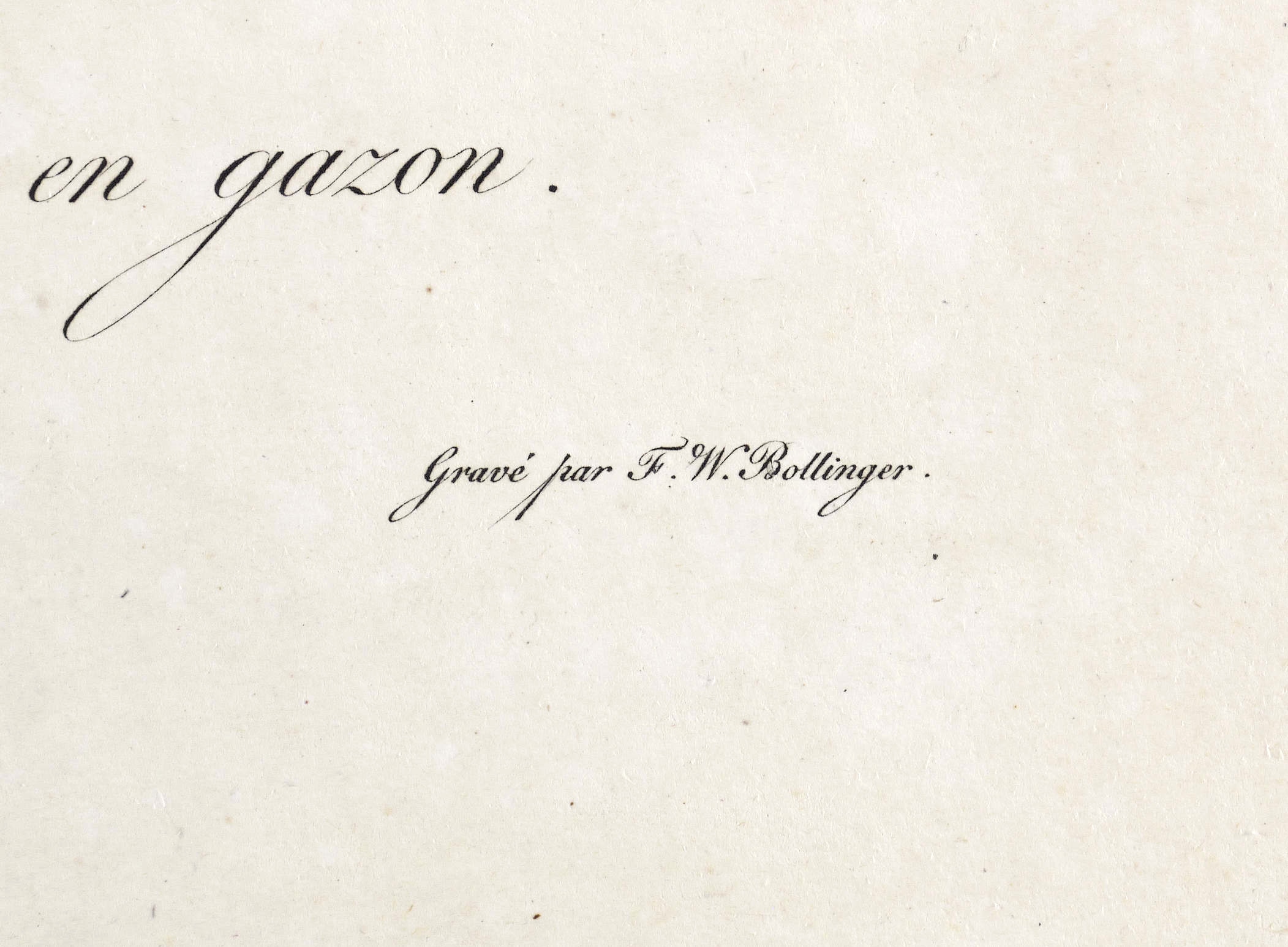 Friedrich Wilhelm Bollinger (1777 Berlin - 1825 Berlin). Deutscher Kupferstecher und Kunstlehrer in Berlin. Studium an der Königlich Preußischen Akademie der Künste in Berlin. Stach nahezu 150 Porträts namhafter Persönlichkeiten, oft nach fremder Vorlage. Als Professor wirkte er an der Berliner Kunstakademie.