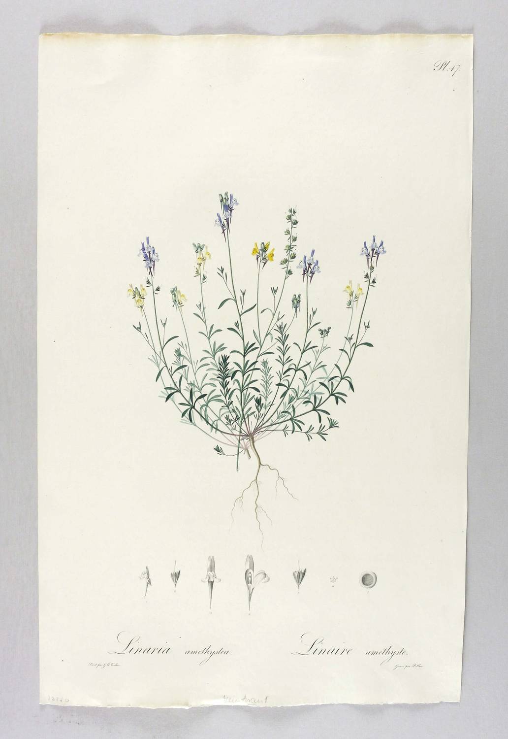 Aus: Johann Centurius von Hoffmannsegg, Flore Portugaise. Ou Description De Toutes Les Plantes Qui Croissent Naturellement En Portugal (Berlin: Carl Friedrich Amelang 1809-20). – Rechts unten signiert: ″Gravé par P. Haas.″ Unterhalb der Darstellung zweisprachig bezeichnet. Oben rechts nummeriert: ″Pl. 47.″ – Blatt mit leichten Lagerspuren. Sonst guter Zustand.