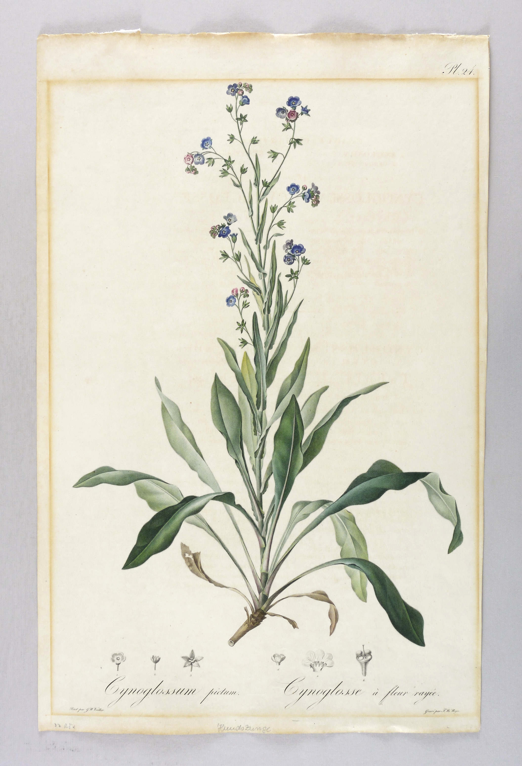 Raublattgewächse. – Kretische Hundszunge. – Hoffmannsegg. – „Cynoglossum pictum. Cynoglosse à fleur rayée”.