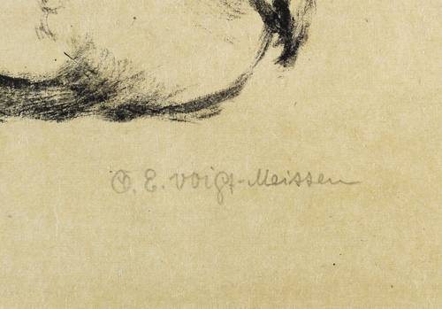 Otto Eduard Voigt (1870 Dresden - 1949 Meißen). Deutscher Keramiker und Grafiker in Meißen. Studierte an der Berliner Kunstschule und der Dresdner Akademie. Tätig an der Porzellanmanufaktur Meißen, dort v.a. Blumenstücke und Tiergrafik.
