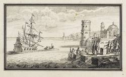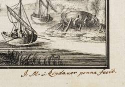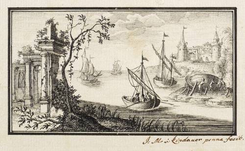 Eines der Blätter rechts unten handschriftlich signiert: ″J: M: v: Lindauer penna fecit.″ Wobei sich bei einigen der Blätter, durch den Schmuckrahmen abgedeckte, nicht vollständig lesbare Signaturen finden lassen. – 7 Bll. mit idealisierten südlichen Landschaften und Hafenanlagen im getuschten Schmuckrahmen. Wohl nach einer Vorlage aus dem 18. oder auch 17. Jahrhundert. – Einzelne Blätter teils schwach fleckig, nur eines mit stärkeren braunen Fleck innerhalb der Darstellung. Wenige verso mit Montagespuren. Sonst aber guter Zustand.